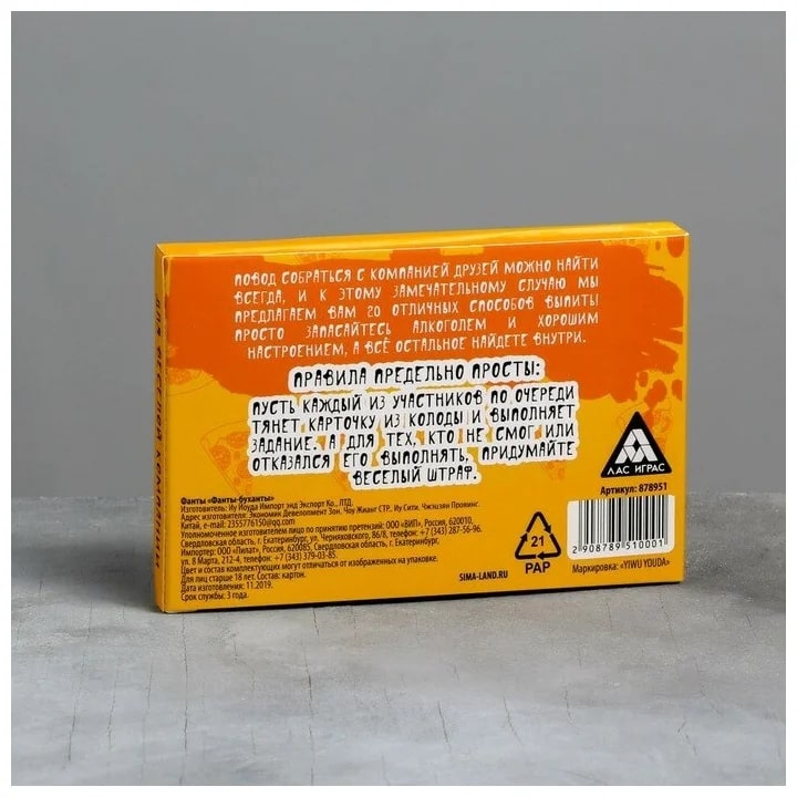 Купить игра для компании "фанты буханты" 20 карт от 100 руб. с доставкой до пункта выдачи в Лангепасе. Интернет магазин ДекаМаркет. Оплата при получении.