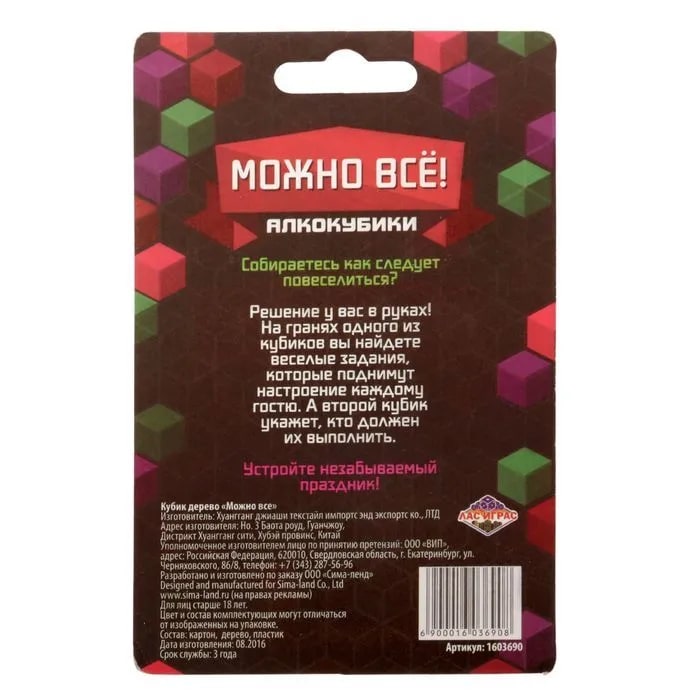 Купить кубик "можно все", алкокубики для принятия решений от 60 руб. с доставкой до пункта выдачи в Лангепасе. Интернет магазин ДекаМаркет. Оплата при получении.