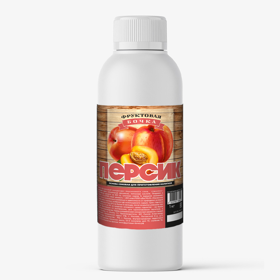 Состав: персиковый сок концентрированный, лимонная кислота, глюкозно-фруктозный сироп, натуральный краситель.